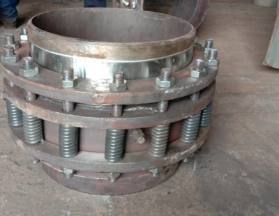旋轉補償器:由旋轉內筒、填料壓蓋、緊固法蘭、導向定心環、成型柔性石墨密封填料、密封壓環、密封座外殼、端接管、螺栓、螺母構成。該產品特點無推力、補償量大、不泄漏。 需特別說明的是常規的旋轉補償器為節約成本、加工方便采用變徑管為接口。而變徑管在熱網管道中會產生渦流、流阻,對管線的流速、流量、壓力均會產生影響,且接口尺寸、形位公差誤差大,很難保證管道焊接質量,因此本公司無推力旋轉補償器系列產品均將變徑管接口改為與管道公式通徑相一致的直管接口,從根本上杜絕了這類問題的產生,經使用深受用戶好評。